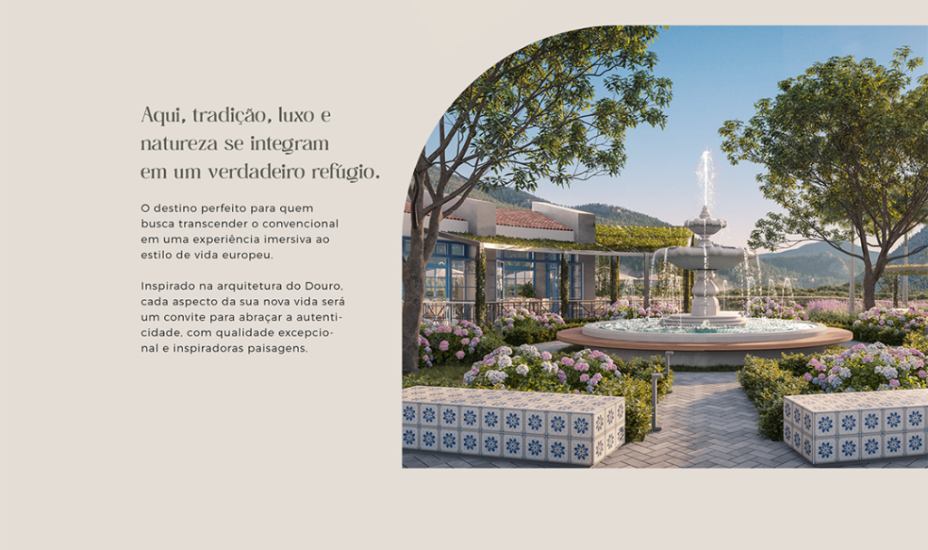 Criamos o posicionamento de um condomínio temático que transforma o estilo de vida português em desejo. Resgatamos poemas de Camões, experiências imersivas nas colheitas e o encanto da tradição para atrair quem busca viver com significado.